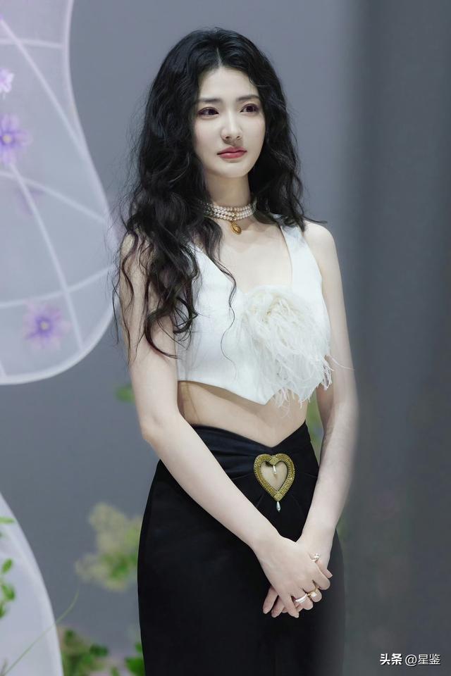 她选的这件白色羽毛短款背心是整个造型的亮点,轻盈的羽毛装饰自带柔焦滤镜,刚好中和了露腰设计的利落感,不会显得太暴露,反而多了几分灵动仙气。V领剪裁巧妙修饰肩颈线条,对圆脸和宽肩姐妹都很友好,视觉上还能拉长颈部比例。